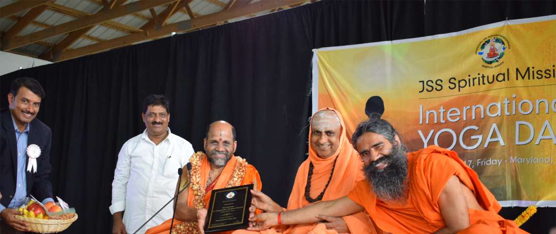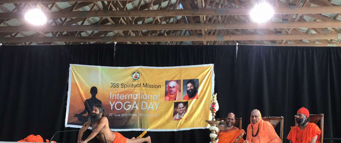 Yoga Day Celebration at JSS Spiritual Mission, Washington DC. Shri Sugunendra Theertha Swamiji, Suttur Swamiji and Baba Ramdev were present in the event.