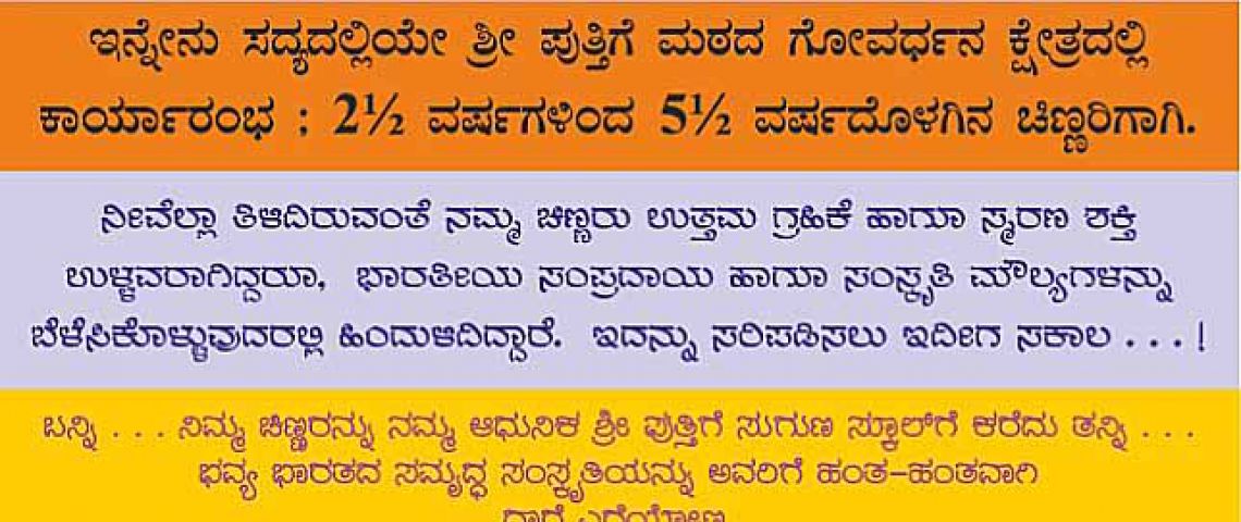Shri Puthige Suguna School - Modern education with traditional values. Gurukulam Environment with Montessori Education. First time in India.