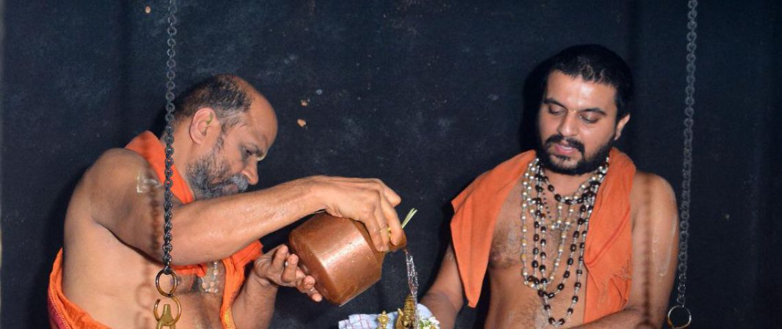 On the auspicious occasion of Hanumantha Jayanthi Sri Sugunendra Theertha Swamiji and Sri Sushreendra Theertha Swamiji performed the divine Madhu Abhisheka