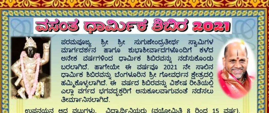 Vasantha Dharmika Shibira 2021 Start On 02-May-2021 to 22-May-2021.