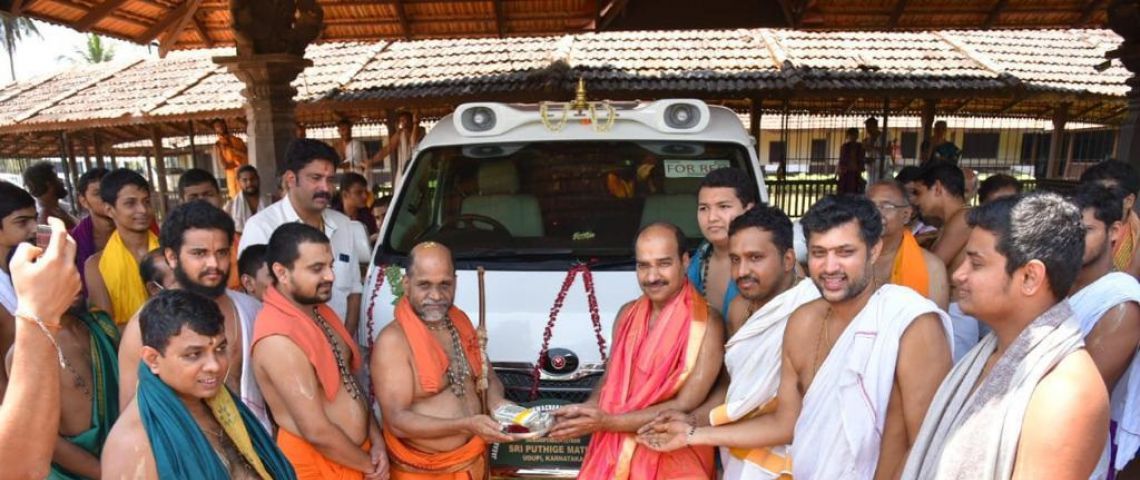 NRI students of Puthige Vidyapeetha donated an expensive vehicle for the travel of Sri Sri Suguneendra Theertha Swamiji for his Paryaya