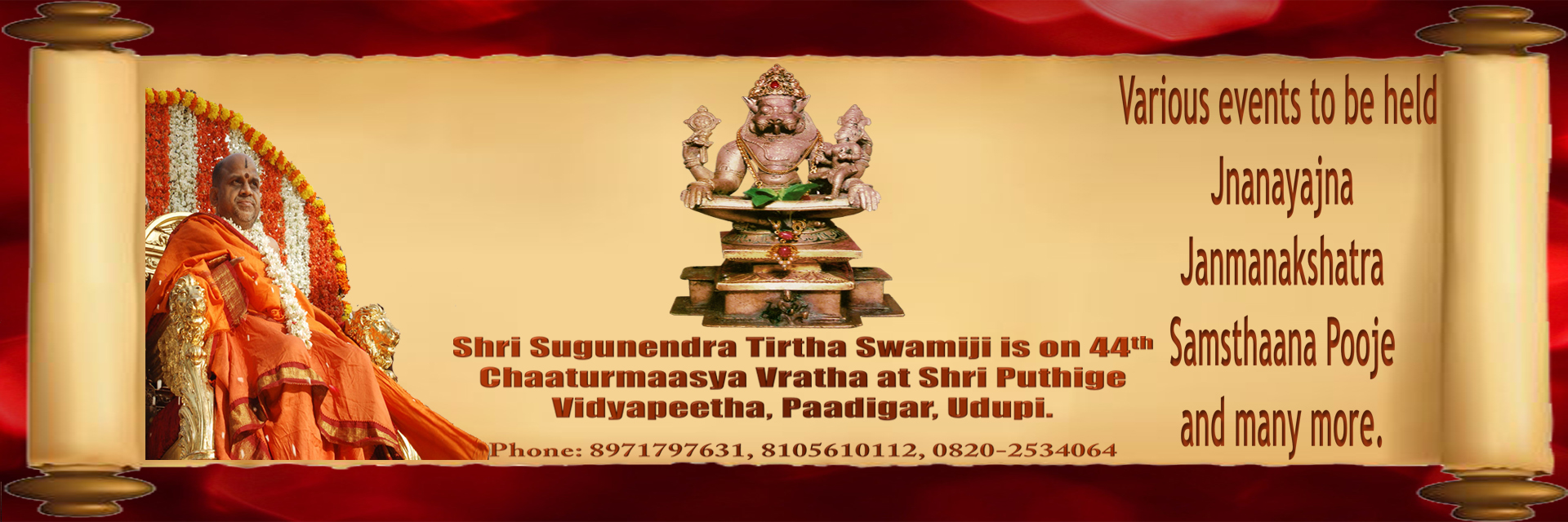 Shri Sugunendra Tirtha Swamiji is on Chaaturmaasya Vratha from 23rd July, 2017 at Shri Puthige Vidyapeetha, Padigaar, Udupi. Various events will be held on this auspicious occasion.