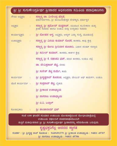 Starting with a parade from Jodukatte to Car Street, Udupi at 4 PM followed by a stage programme to be held at Rajangana, Udupi at 5 PM. All are cordially invited.