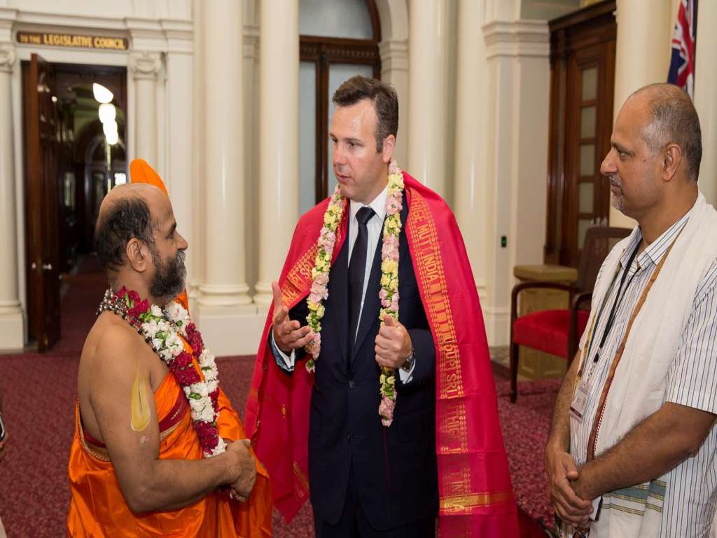 Shri Sugunendra Theertha Swamiji at Parliament of Victoria building, Melbourne