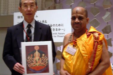 His Holiness Sri Sri Sugunendra Theertha Swamiji’s crusade to the west happened almost 11 years ago. It was because of the strong desire and the quest for Madhva philosophy of the members of Cyber Madhva Sangha, which eventually became Vishwa Madhva Sangha, which motivated His Holiness to take this revolutionary step. He became a source of knowledge for some dedicated Madhva devotees. Swamiji’s accessibility to all devotees was easily realized because of the advent of internet and mobile phone. Very quickly Swamiji’s name and fame spread even outside the Madhva circle.