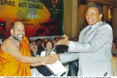 Sometime during the early 1999, an International Multifaith Organization called ‘Religions for Peace’ (formally known as World Conference on Religions for Peace’ -WCRP) invited His Holiness to join the interreligious community and work for World Peace through interfaith peace dialogue. Swamiji was formally introduced to this global platform in November 1999 in Jordan, Amman, where He addressed the 7th World Assembly of Religions for Peace as a senior Hindu Religious Leader. During the same occasion, He was elected to the governing body of Religions for Peace as one of the International Presidents, representing Hindu Community. Thus Swamiji became the ‘Hindu face’ and ‘Hindu Voice’ of Religions for Peace.